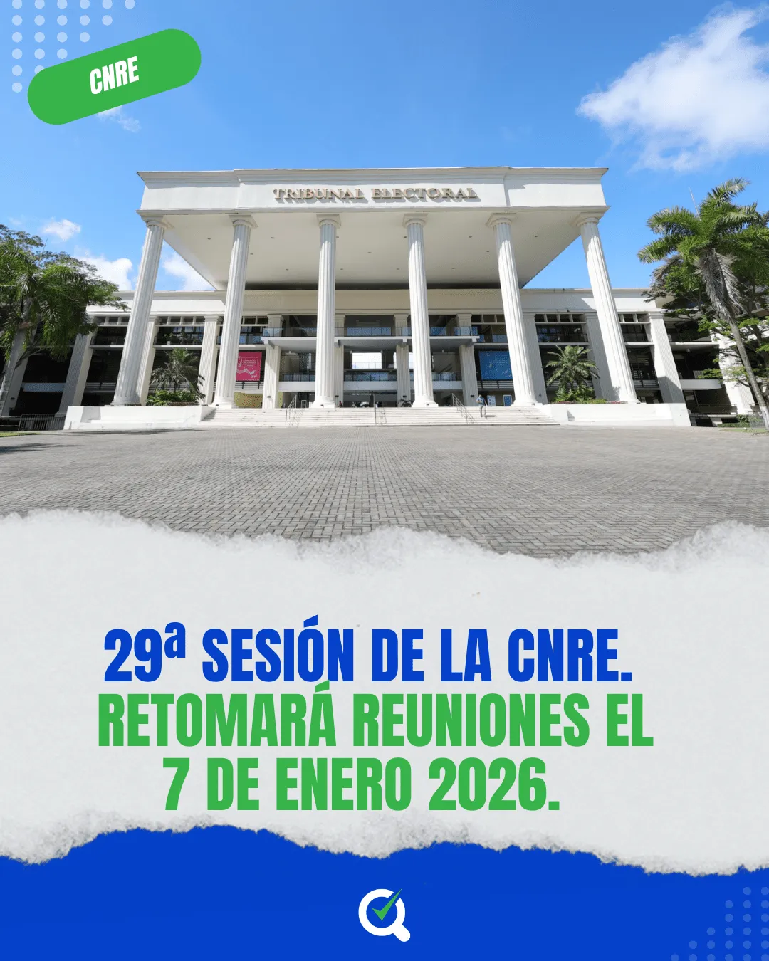 La Comisión Nacional de Reformas Electorales (CNRE) durante su sesión No. 29, celebrada el 4 de diciembre, acordó suspender la discusión del último bloque de modificaciones debido a las fiestas de fin de año y retomarlas el próximo 7 de enero de 2026.