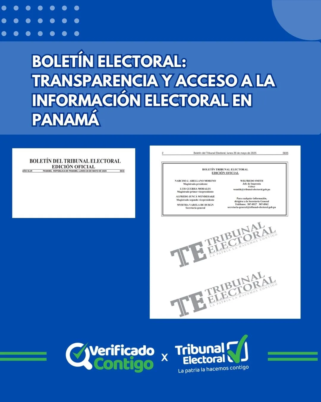 El Boletín Electoral es la principal fuente oficial del Tribunal Electoral de Panamá, creado mediante la Ley 81 de octubre de 1978 y reglamentado a través del Decreto 194 de 18 de diciembre de ese mismo año, para sustituir a la Gaceta Oficial en lo relacionado con publicaciones de índole electoral, brindando así un medio especializado y accesible para la ciudadanía.