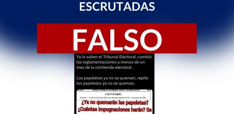 Es completamente falso este mensaje que se ha publicado en redes sociales, en el que se afirma que las boletas de votación no serán quemadas el 5 de mayo de 2024, día de la Elección General. Es importante aclarar que, de acuerdo con el procedimiento de escrutinio, establecido en el artículo 434 (numeral 12) del […]