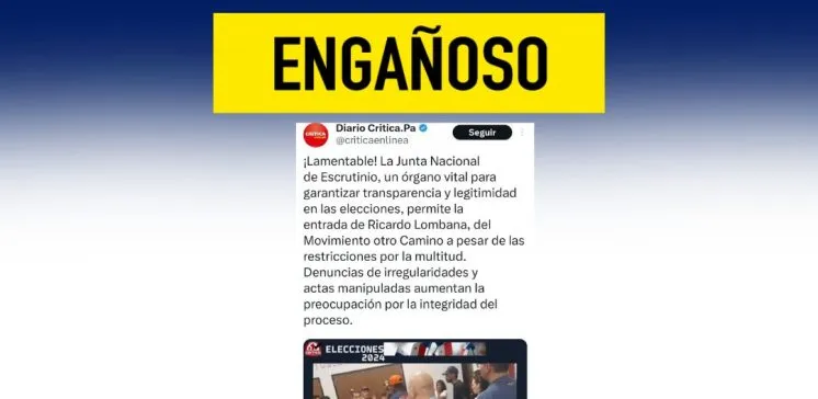 No es cierto lo que difunde este medio de comunicación a través de las redes sociales. Ni el candidato Ricardo Lombana, del partido Movimiento Otro Camino (MOCA), ni ningún otro ha ingresado a la Junta Nacional de Escrutinio (JNE), cuya sede está ubicada en el Parlatino de la ciudad capital. La JNE es la encargada […]