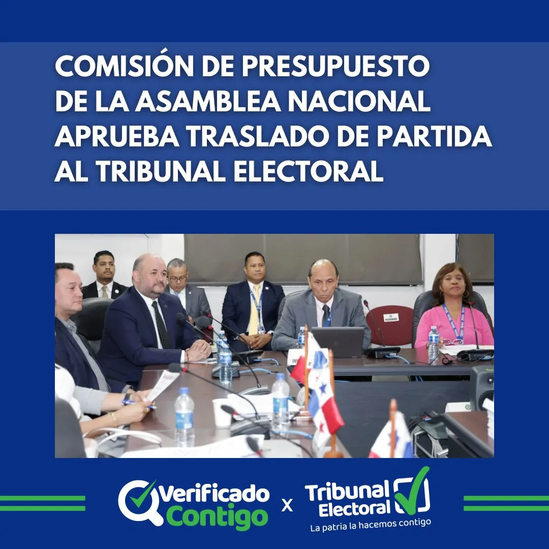 La Comisión de Presupuesto de la Asamblea Nacional (AN) aprobó al Tribunal Electoral (TE) de Panamá dos traslados de partidas por un monto de B/ 6,416,865.