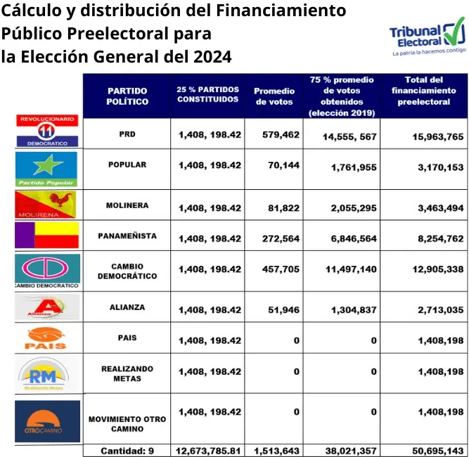 El Boletín Electoral 5251-B del lunes 16 de enero de 2023, se da a conocer el cálculo y distribución del financiamiento público preelectoral de los partidos políticos constituidos, para la Elección General del 5 de mayo de 2024.
