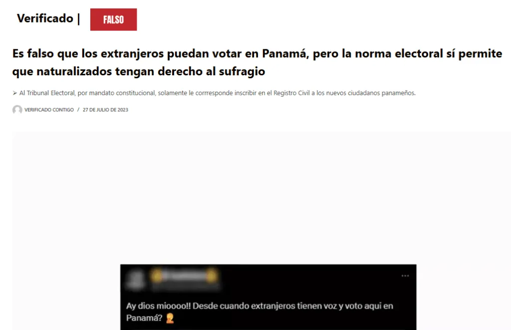 En Verificado Contigo, en la categoría FALSO, se aclaró que los extranjeros no pueden votar en Panamá, aunque también se explicó que la norma electoral sí permite que naturalizados tengan derecho al sufragio.