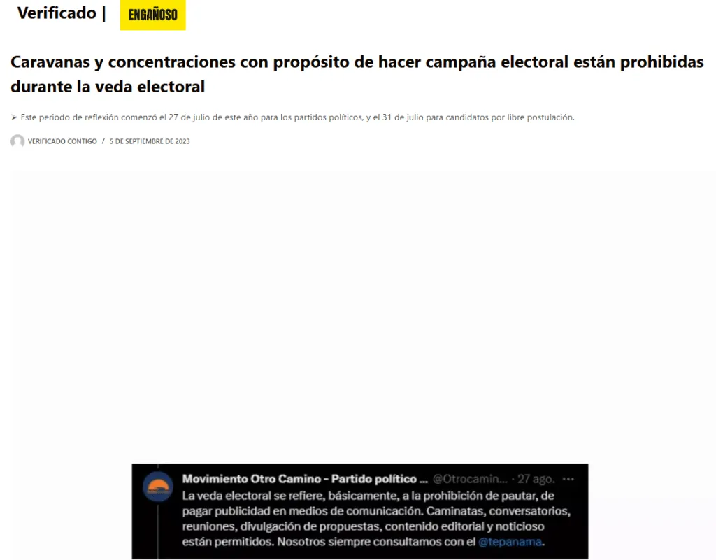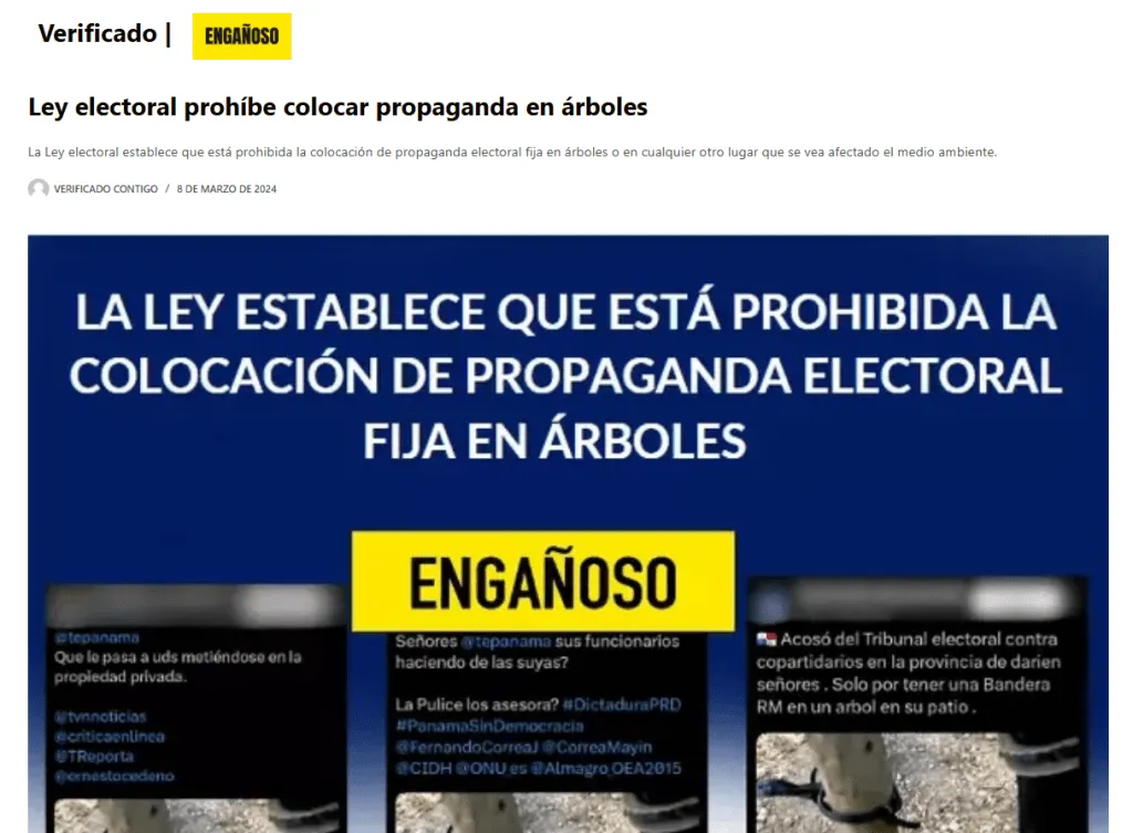 Algunos ejemplos de este tipo de desinformaciones que se dieron durante el pasado periodo preelectoral en Panamá y que el Tribunal Electoral verificó a través de Verificado Contigo, estuvieron relacionados con: