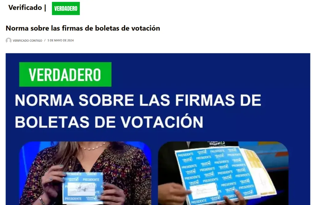 Respuesta: Mediante su categoría de VERDADERO, verificadocontigo.com hizo docencia, al indicar que, de acuerdo con el Decreto 29 del 30 de mayo de 2022 y con el Instructivo de Mesa, el voto sería nulo si el dorso de la boleta de votación no tenía al menos una de las firmas de los miembros la mesa.