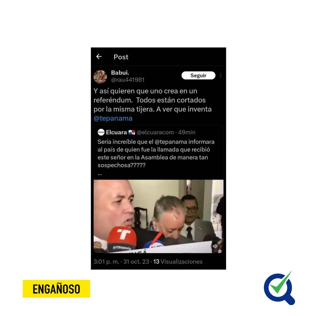 El magistrado y director del PLAGEL, Eduardo Valdés Escoffey, aclara a la ciudadanía, que, en efecto, mientras se encontraba este martes en la Comisión de Gobierno, Justicia y Asuntos Constitucionales de la Asamblea Nacional, recibió una llamada del ministro de Economía y Finanzas, Héctor Alexander, para confirmarle que el gobierno cuenta con los recursos para la nueva consulta popular para la aprobación o no de la validez del contrato de concesión minera, aprobado mediante Ley 406 de 20 de octubre de 2023.