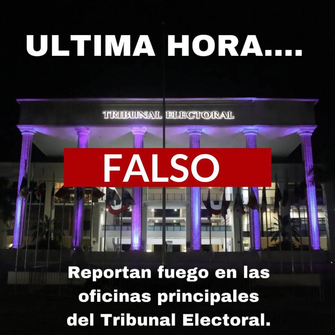 Verificado | ¡Es falsa esta información que circula en redes! No se ha registrado ningún fuego en las oficinas principales del Tribunal Electoral⮚Todos se mantiene con normalidad en la institución. Verificado Contigo29 de octubre de 2023 Todos se mantiene con normalidad en la institución. Etiquetas# TE# Tribunal Electoral# verificadocontigo.com Comparte en tus redes Entrada anterior TE extiende período del uso del módulo informático para que partidos políticos puedan hacer sus últimas postulaciones a través de esta plataforma Siguiente Entrada Pleno del TE comunica que, en estos momentos, no hay condiciones para organizar consulta popular sobre Ley 406