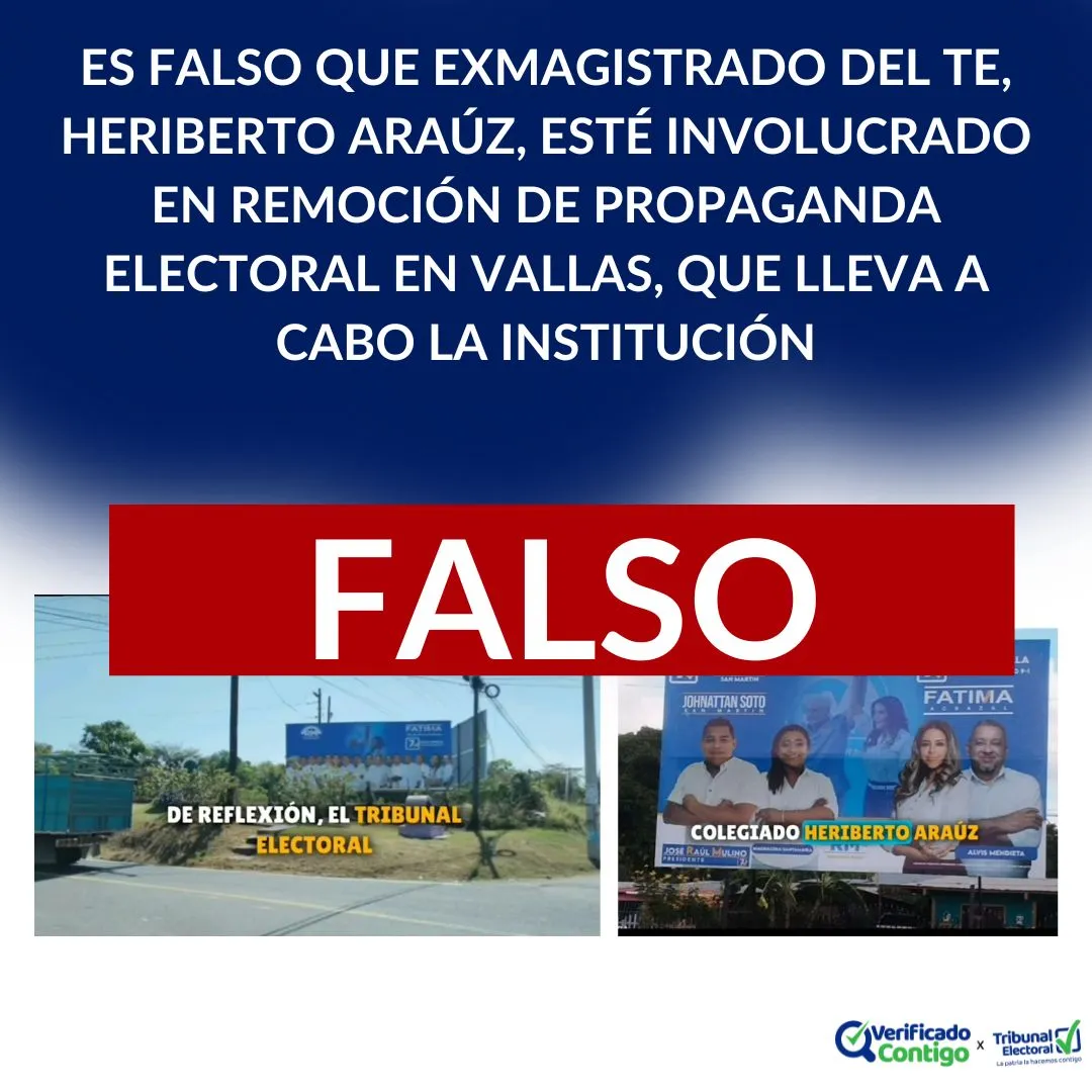 Es falso lo que se menciona en este video que circula en redes sociales. El exmagistrado del Tribunal Electoral (TE), Heriberto Araúz, no está involucrado en la remoción de las vallas que realiza la institución, a través de sus direcciones regionales, en diversos puntos del país.