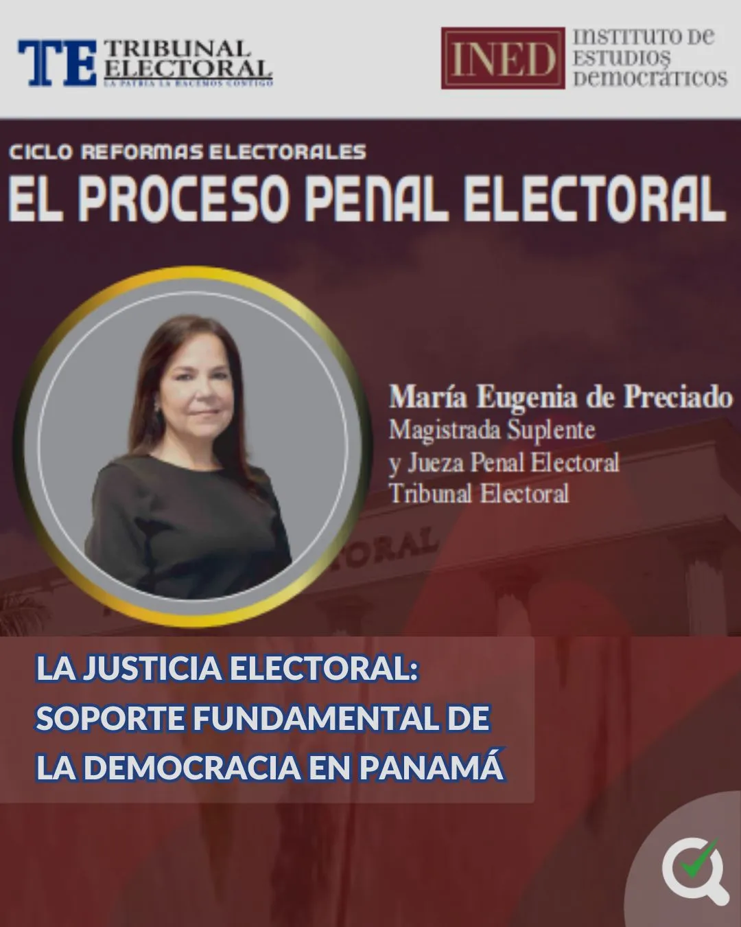 Durante un reciente webinar organizado por el Instituto de Estudios Democráticos (INED) del Tribunal Electoral, la magistrada suplente y juez de garantía penal electoral del Primer Distrito Jurisdiccional, María Eugenia de Preciado, hizo un recorrido histórico sobre la jurisdicción penal electoral en Panamá, que permite comprender el sistema democrático del país.