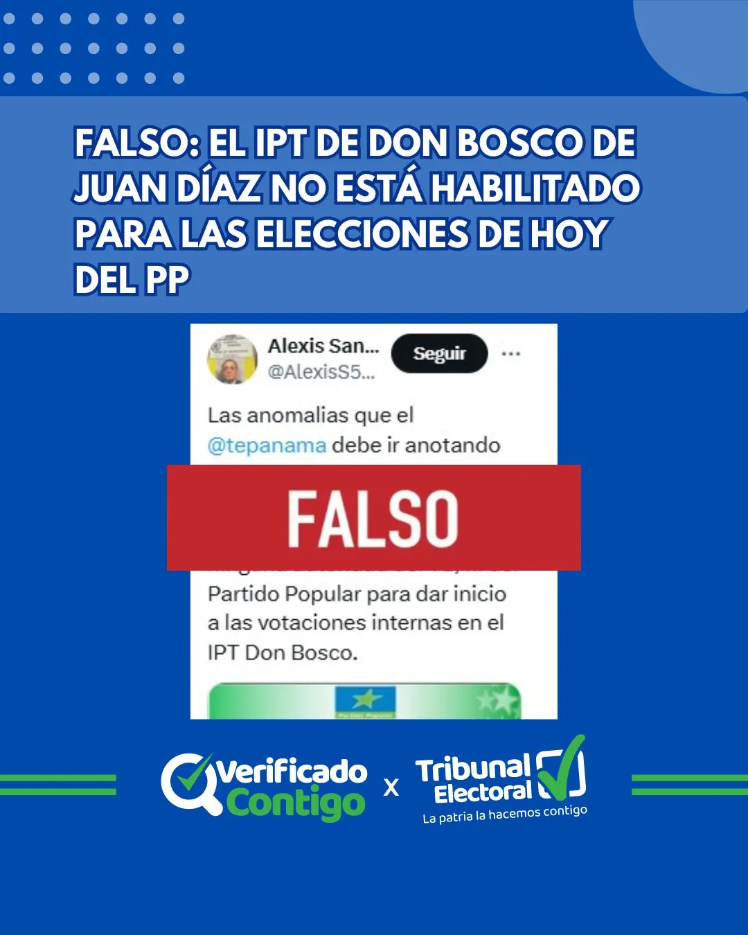 La entidad aclara que desde las 7:00 de la mañana de hoy, el personal de la institución ha estado presente en el Instituto Técnico Don Bosco del corregimiento de San Francisco. Este centro cuenta con dos mesas de votación y le corresponde votar a los miembros del Partido que residen en los corregimientos de Parque Lefevre, Río Abajo, Juan Díaz, Don Bosco y San Francisco.