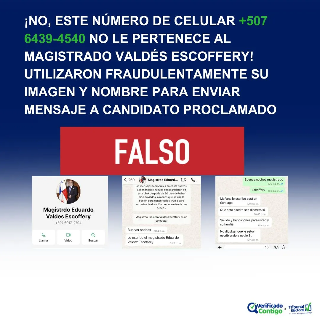 En este sentido, es importante señalar que el número de celular que aparece en el perfil de esta cuenta no corresponde al del magistrado Valdés Escoffery.