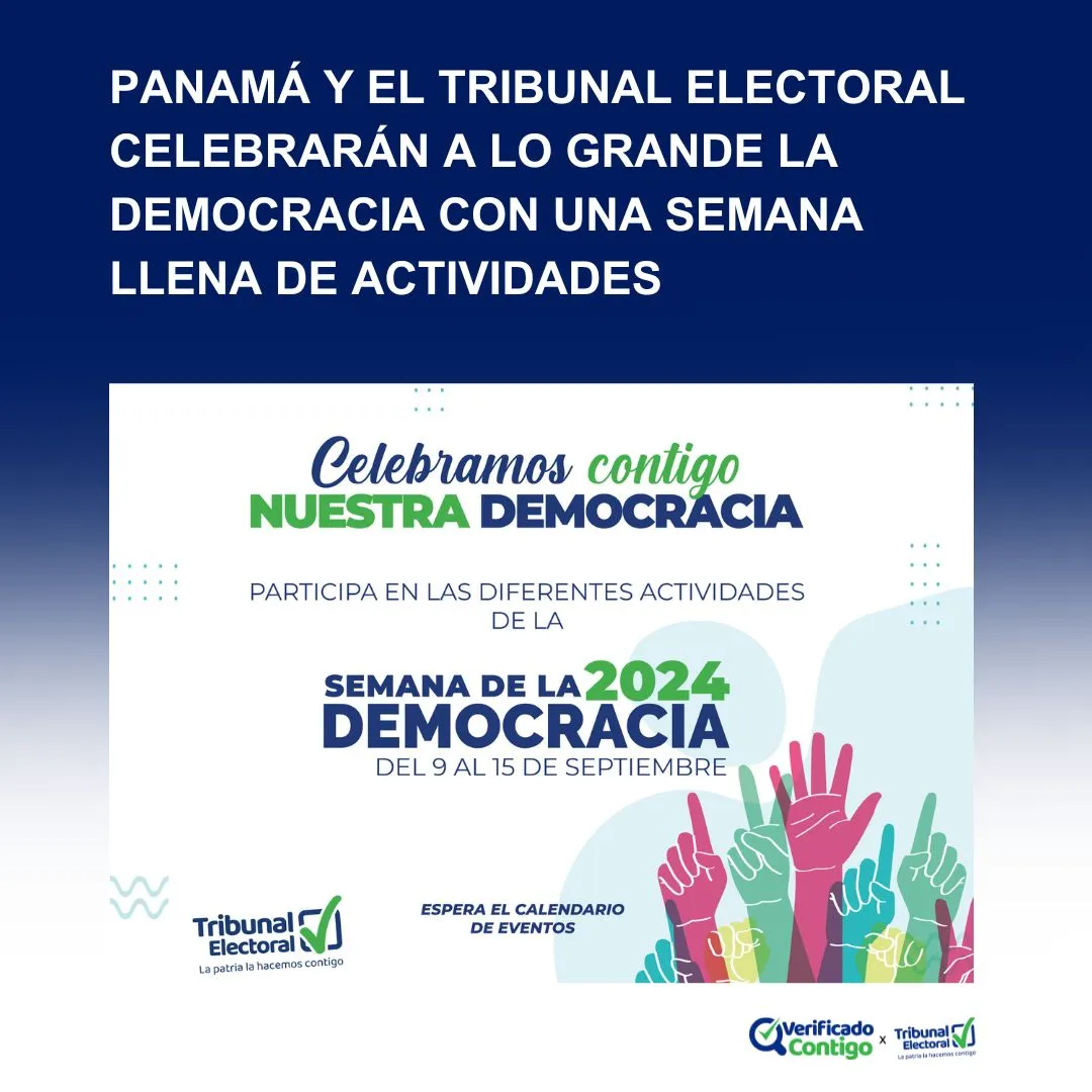En conmemoración del Día Internacional de la Democracia, el Tribunal Electoral (TE) llevará a cabo, entre el 9 y 15 de septiembre de este 2024, una serie de actividades destinadas a celebrar, junto a la población panameña, la Semana de la Democracia, con el objetivo de crear un espacio para concientizar a la ciudadanía sobre la importancia que tiene la democracia en nuestra vida republicana, en los tiempos modernos.