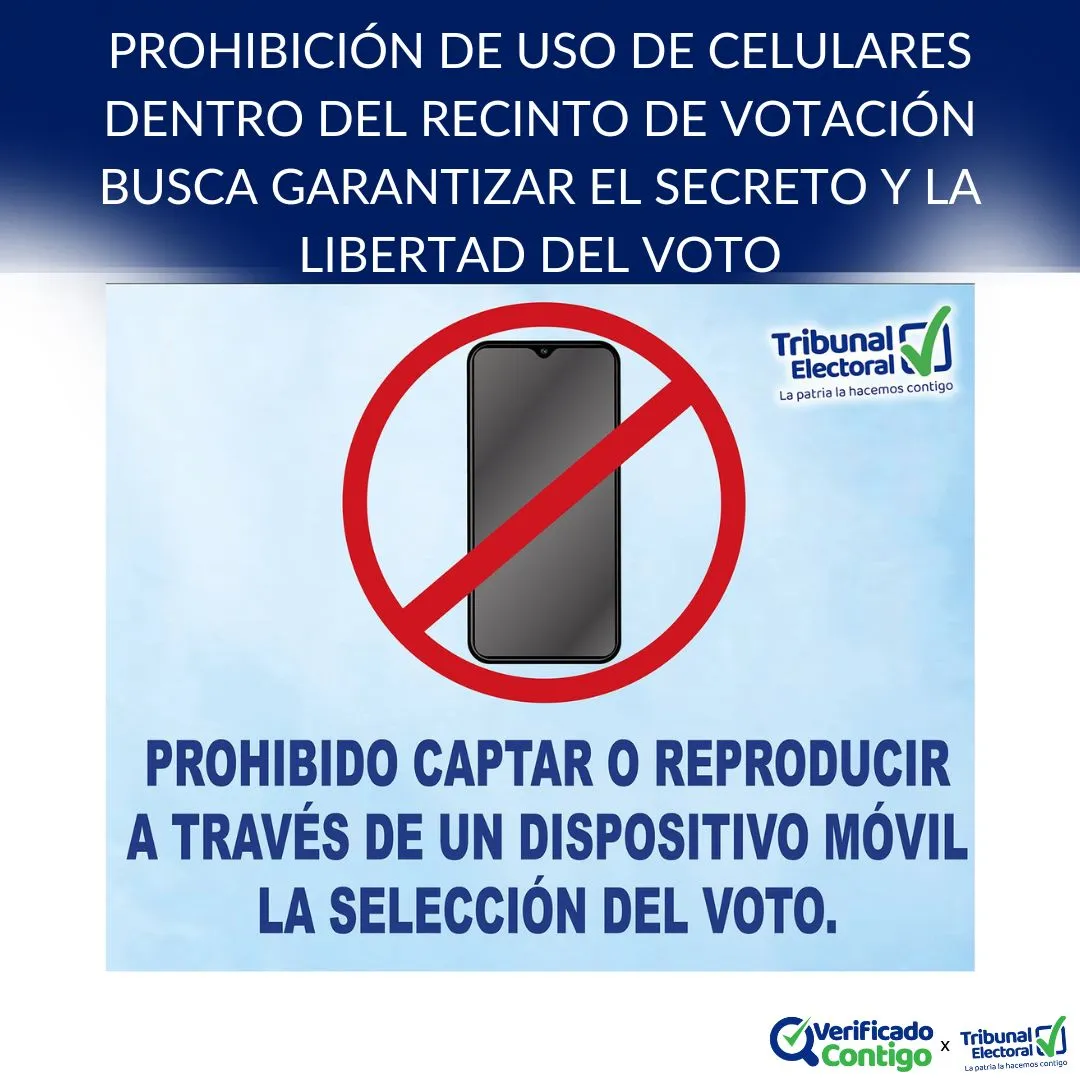 Como elector, es importante que conozcas que el próximo 5 de mayo de 2024, día de la Elección General, no podrás utilizar, dentro del recinto de votación, tu teléfono celular, ni cualquier otro medio o soporte tecnológico, de acuerdo con lo establecido en el artículo 349 del Decreto 29 del 30 de mayo de 2022.