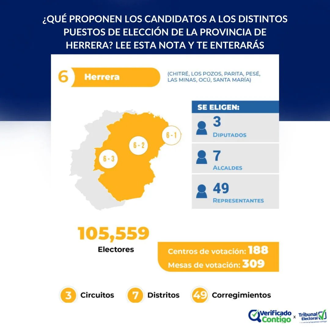 En los comicios generales del 5 de mayo de 2024, Herrera contará con 188 centros de votación y 309 mesas de votación para que 105,559 electores (52,513 mujeres y 53,046 hombres) puedan elegir a las autoridades que gobernarán en el próximo quinquenio.