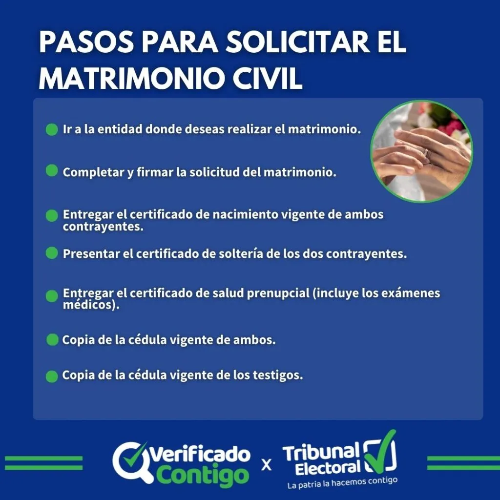 Si los interesados desean casarse a través del Tribunal Electoral, deben acudir a la oficina regional del Registro Civil más cercana para entregar los documentos requeridos.