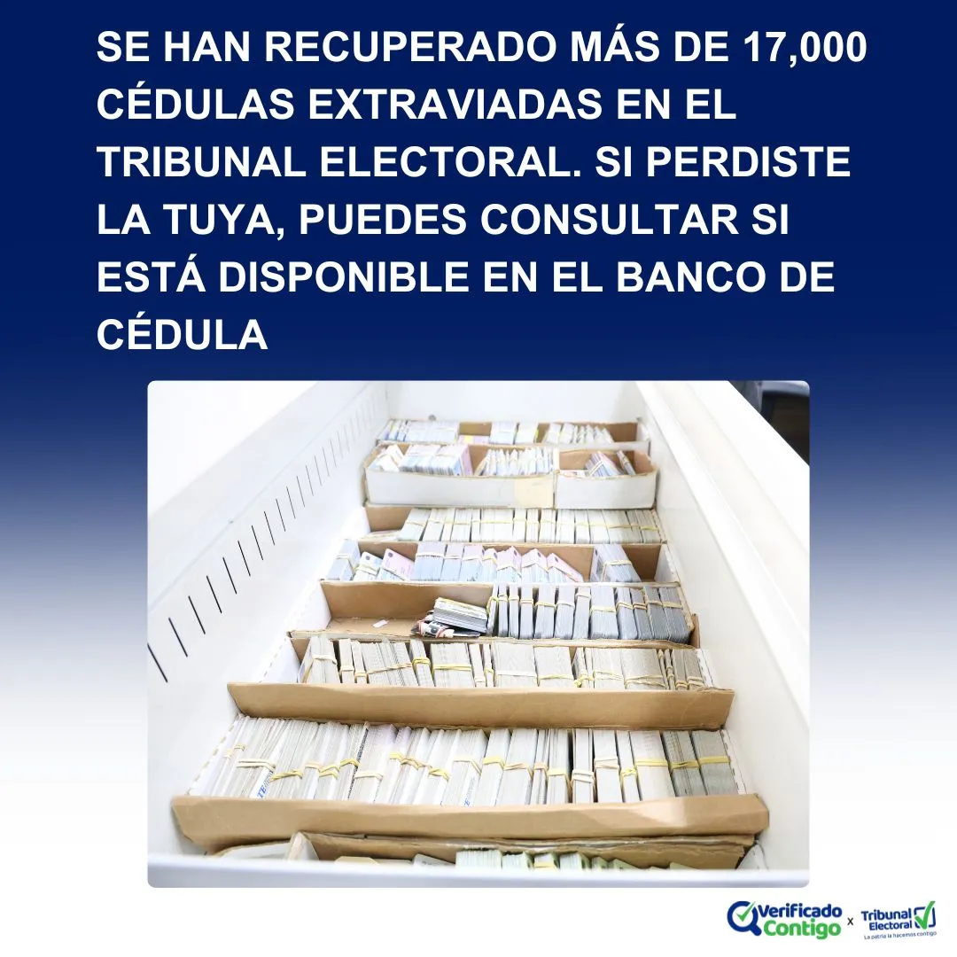 El Tribunal Electoral (TE) mantiene en custodia un banco de cédulas extraviadas, permitiendo a los usuarios consultar si su documento está disponible y retirarlo sin costo alguno.