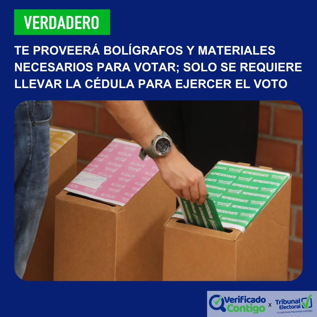 Para ello, el TE le suministrará a cada centro de votación suficientes boletas para todas las mesas de votación. Así también, proveerá las mamparas, ubicadas en los respectivos recintos de votación, con bolígrafos de tinta indeleble color azul para que el votante pueda dejar plasmada con claridad su intención de voto.